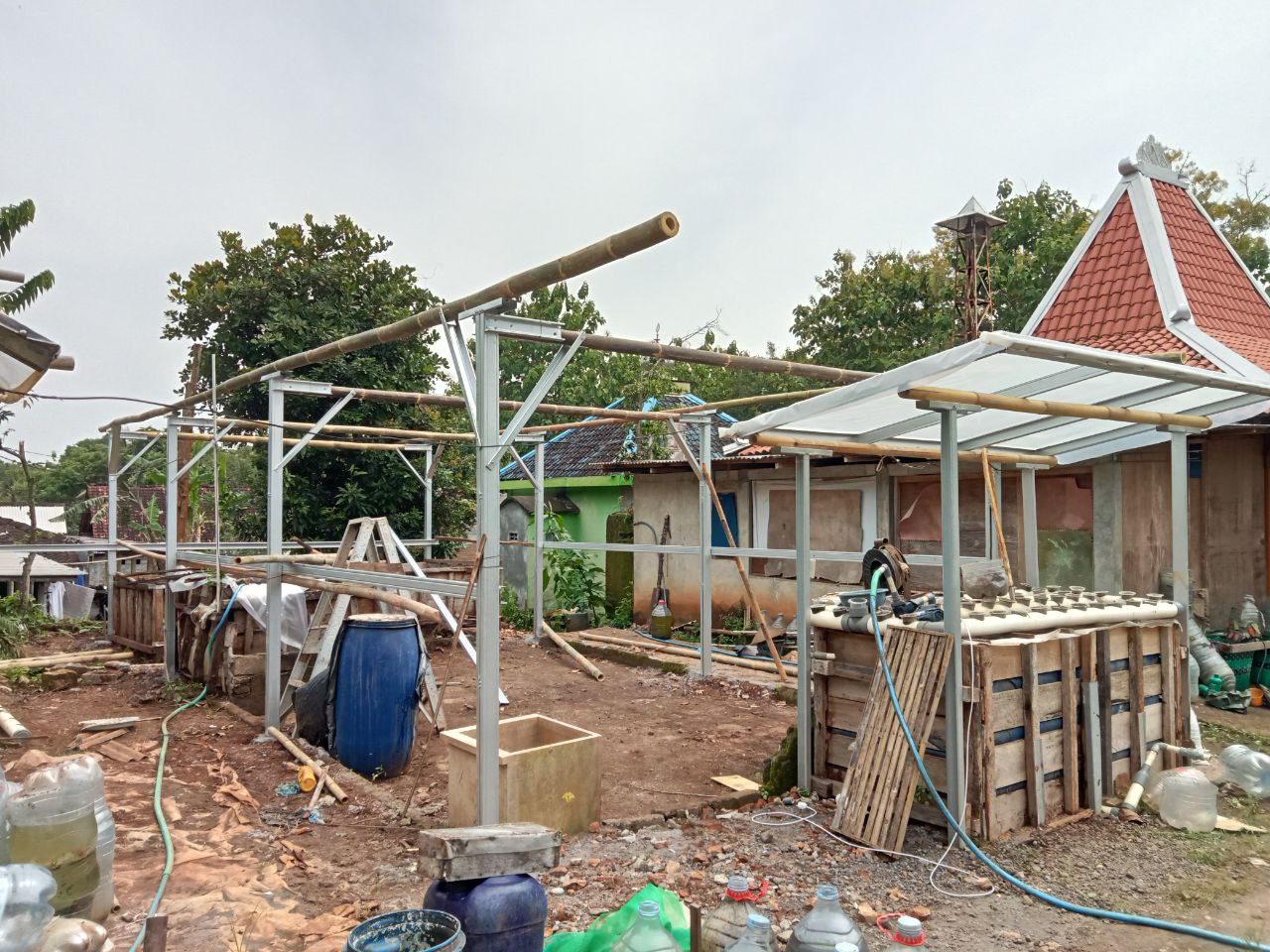 Pembangunan greenhouse dilakukan secara gotong royong oleh warga, sebagai upaya menekan biaya operasional sekaligus memperkuat rasa kepemilikan dan kebersamaan antaranggota kelompok. Pendekatan partisipatif ini menjadi bagian penting dalam proses pendampingan yang dilakukan Lokadesa.