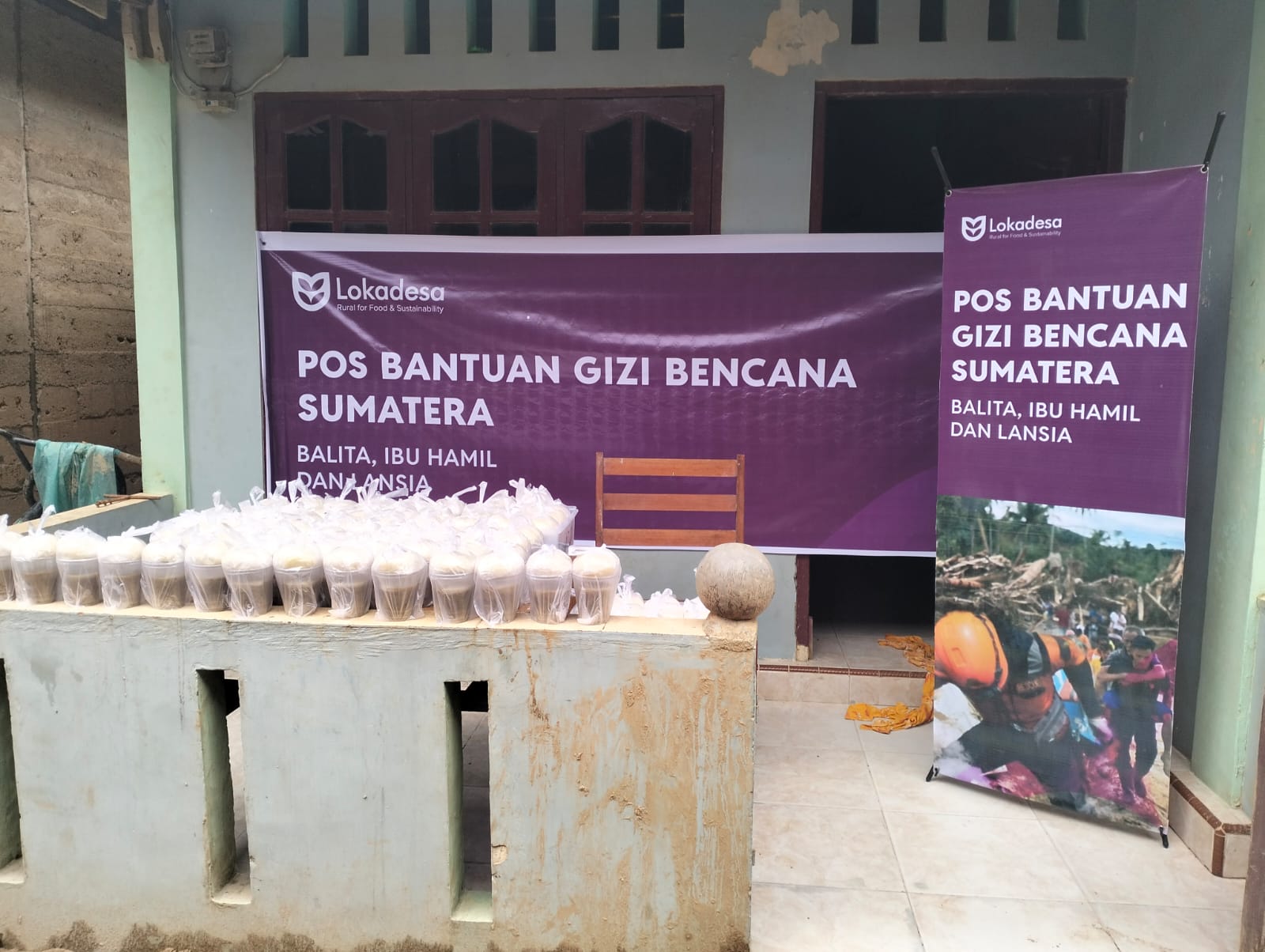 Loka Desa membuka Pos Gizi untuk warga terdampak banjir bandang di Kecamatan Palembayan, Kabupaten Agam, Sumatera Barat. Bantuan ini difokuskan pada kelompok rentan ibu hamil, balita, dan lansia yang sangat membutuhkan asupan makanan bergizi selama masa pemulihan.