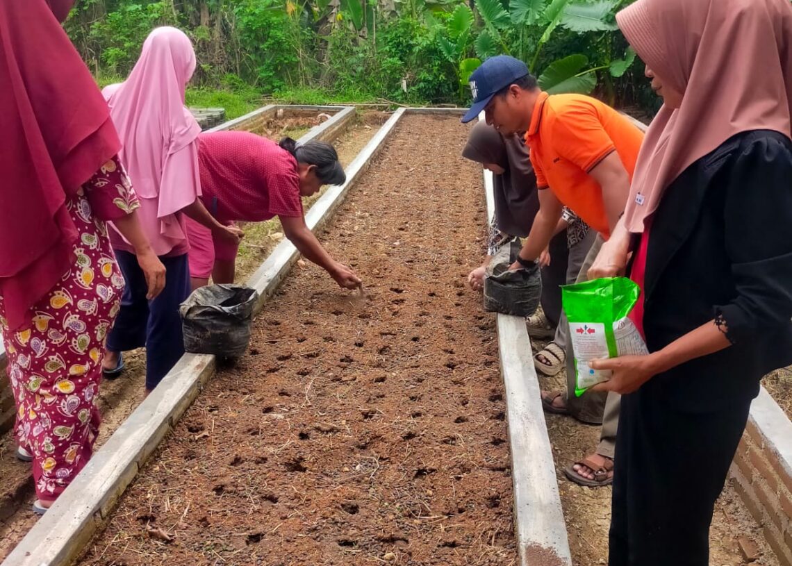 Yang menarik, sebagian besar kebun pekarangan ini dikelola oleh ibu-ibu rumah tangga. Mereka yang setiap hari paling dekat dengan urusan dapur dan kebutuhan keluarga, kini juga berperan langsung dalam menjaga ketersediaan pangan. Dari aktivitas yang terlihat sederhana ini, perlahan tumbuh kemandirian baik dalam memenuhi kebutuhan pangan maupun dalam mengelola sumber daya yang dimiliki.